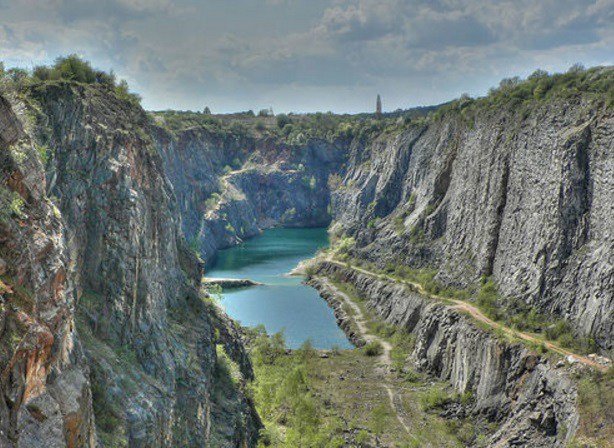 После того как добыча полезных ископаемых на этом участке завершилась, вода залила ущелье, образовав красивое синее озеро на его дне. Это новое озеро стало настоящей достопримечательностью карьера!